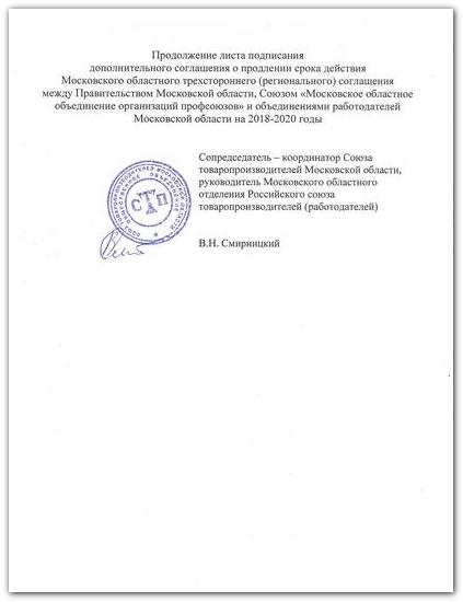 Дополнительное соглашение о продлении срока действия МОСКОВСКОГО ОБЛАСТНОГО ТРЕХСТОРОННЕГО (РЕГИОНАЛЬНОГО) СОГЛАШЕНИЯ