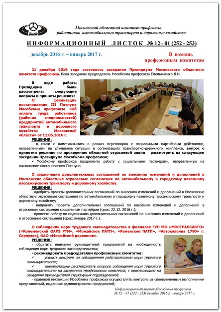 Информационный листок № 12-01 (252-253) декабрь 2016 - январь 2017 год