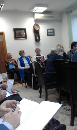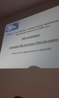 С выступлением по 1-му вопросу выступила заместитель председателя Союза "Московское областное объединение организаций профсоюзов" В.М. Акимова, которая проинформировала собравшихся о результатах заседания Рабочей группы МОТК, прошедшей 14 ноября в Министерстве социального развития Московской области.