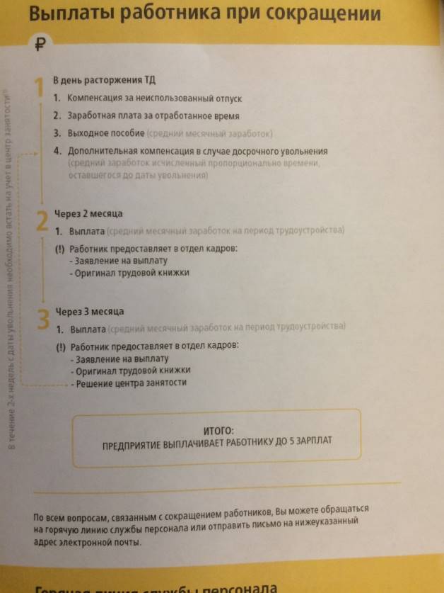 Для работников, получивших уведомление о сокращении, Работодателем подготовлена Памятка об их действиях при увольнении по сокращению.