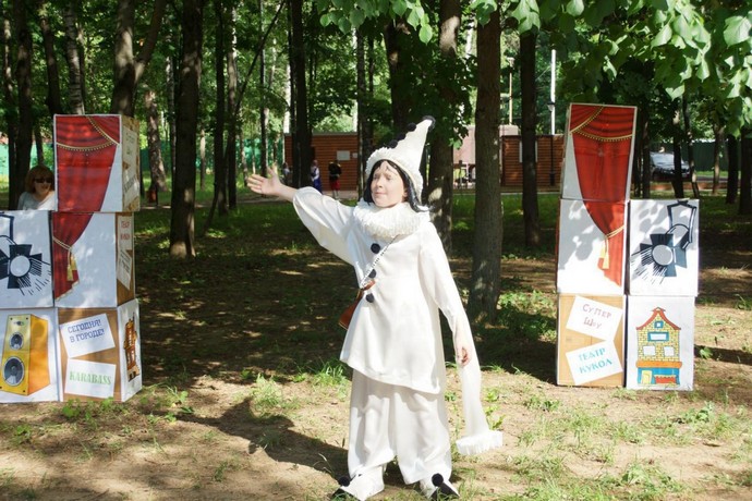 В роли печального Пьеро - сын водителя автобуса Автоколонны № 1792 г. Клин В.Г. Кирка -Андрей. Усадьба Знаменское-Губайлово, г. Красногорск, 2 июня 2019 г.