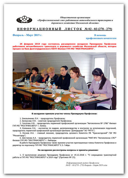 Информационный листок Мособкома профсоюза № 02 – 03 (278 - 279) февраль 2019 г. – март 2019 г.