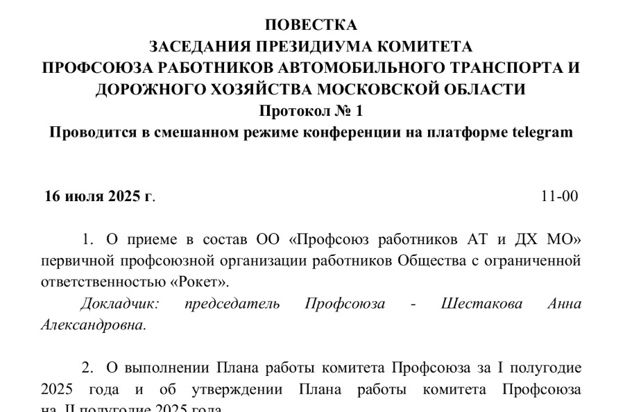 16 июля 2025 года прошло заседание президиума комитета Профсоюза