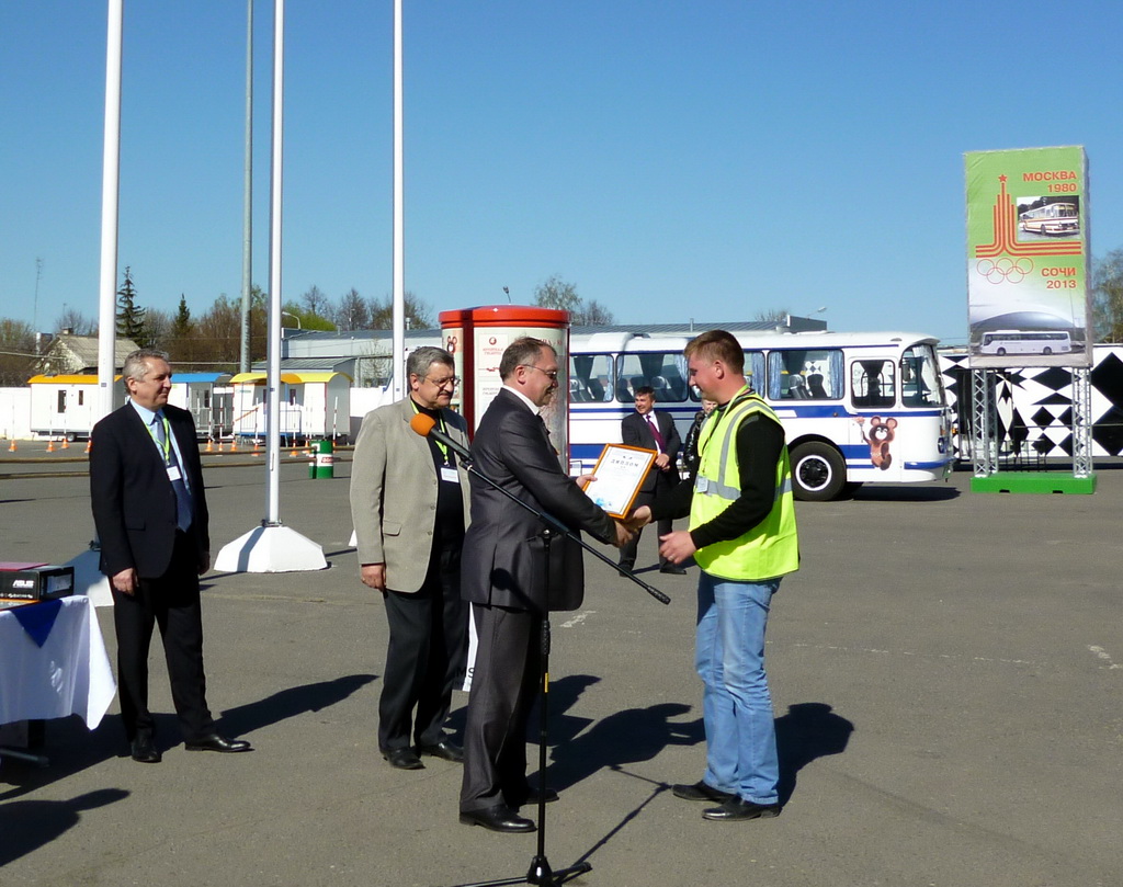 Учреждённые Президиумом Мособкома профсоюза Дипломы в номинации «Молодая смена» (самый молодой участник) и «За профессионализм и верность традициям» (ветеран по стажу работы на автомобиле) и ценные подарки (телевизоры) вручены в соответственно члену профсоюза, водителю «Мерседес-Бенц спринтер» Павлово-Посадского ПАТП Караваеву Николаю (10.04.1990 года рождения) и члену профсоюза, водителю автобуса «ЛИАЗ-5256» «МАП № 2 автоколонна 1417 г. филиал ГУП МО «МОСТРАНСАВТО» г. Коломна, Макаровой Светлане Николаевне (23 года водительского стажа).